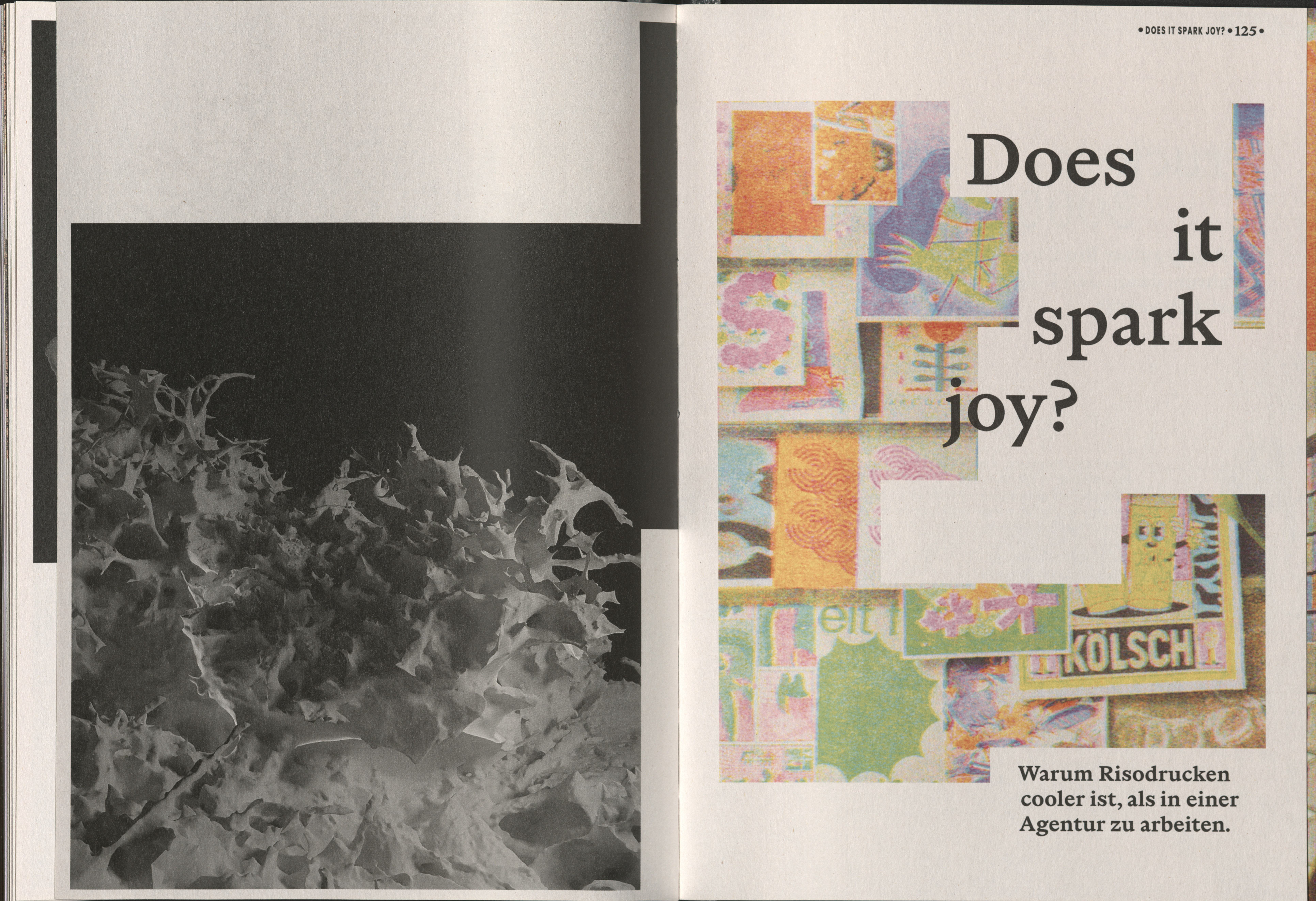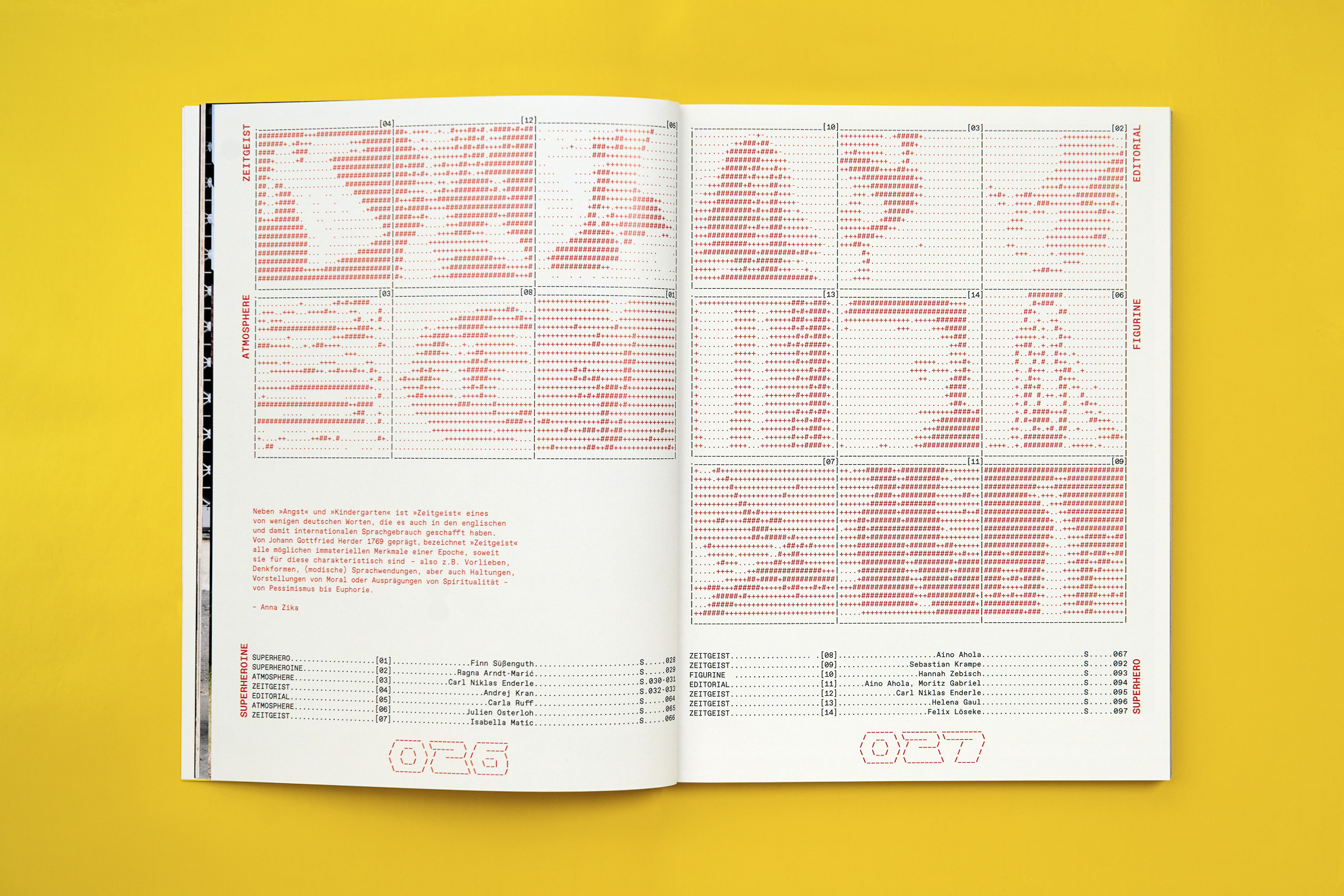 Auf schier endlos langen Doppelseiten könnt ihr sehen und lesen, wie wir den gestalterischen Experimentiergeist der letzten fünf Jahre präsentiert und reflektiert haben.
